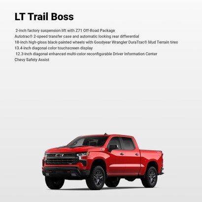 - Available on RST, LT Trail Boss, LTZ and High Country 4x4 models