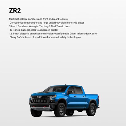 The Silverado is known for being a durable and dependable, heavy-duty pickup. It's ready for anything, whether you're going on off-road adventures or simply navigating the city. The 2022 Chevrolet Silverado is available in 9 different models, including the first-ever Silverado ZR2. This new model is the most off-road-ready Silverado ever created.