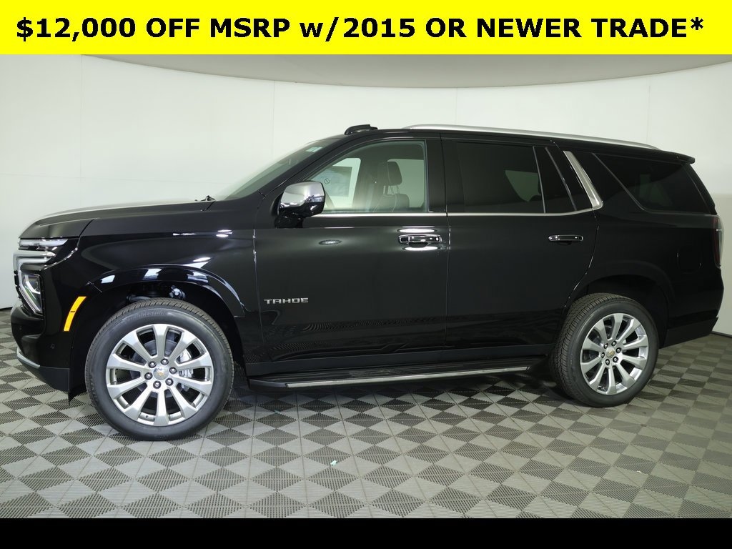 Black 2025 Chevrolet Tahoe Premier 4WD 10-Speed Automatic with Overdrive EcoTec3 5.3L V8 All Wheel Drive, ** Adaptive Cruise Control, ** Apple CarPlay/Android Auto, ** Alloy Wheels / Premium Wheels, ** Automatic Emergency Braking, ** Backup Camera, ** Blind Spot Monitor, ** Cooled Seats, ** Cross Traffic Alert, ** Cruise Control, ** Heated Seats, ** Heated Steering Wheel, ** Keyless Start, ** Lane Departure Warning, ** Leather Seats, ** Navigation System, ** Premium Sound System / Premium Audio, ** Rear Cross Traffic Alert, ** Remote Start, ** Satellite Radio, ** Stability Control, ** Steering Wheel Controls, ** Third Row Seating / 3rd Row Seating, ** USB Port, ** WiFi Hotspot, ** All-Wheel Drive, ** Four-Wheel Drive / 4X4, 1st & 2nd Row Color-Keyed Carpeted Floor Mats, 3-Spoke Wrapped Steering Wheel, 3rd Row 60/40 Power-Folding Split-Bench Seat, 3rd row seats: split-bench, 8-Way Power Driver Seat Adjuster, 8-Way Power Front Passenger Seat Adjuster, Adaptive suspension, Alloy wheels, AM/FM radio: SiriusXM with 360L, Apple CarPlay/Android Auto, Auto High-beam Headlights, Auto-dimming door mirrors, Auto-Dimming Inside Rear-View Mirror, Auto-dimming Rear-View mirror, Auto-leveling suspension, Automatic temperature control, Bose 10-Speaker Centerpoint Surround Audio Sys Ft, Bright Front & Rear Door Sill Plates, Compass, Delay-off headlights, Driver & Front Passenger Heated & Ventilated Seats, Driver vanity mirror, Dual Exhaust System, Dual front impact airbags, Dual front side impact airbags, Electronic Stability Control, Emergency communication system: OnStar and Chevrolet connected services capable, Exterior Parking Camera Rear, Floor Console, Front Bucket Seats, Front Center Armrest, Front dual zone A/C, Front Pedestrian & Bicyclist Braking, Front reading lights, Frontal Driver & Outboard Passenger Airbags, Fully automatic headlights, Garage door transmitter, Heated 2nd Row Outboard Seats, Heated door mirrors, Heated Driver & Front Passenger Seats, Heated front seats, Heated rear seats, Heated Steering Wheel, Illuminated entry, LED Headlamps w/LED Daytime Running Lamps, Magnetic Ride Control Suspension, Memory Settings, Navigation System, Navigation system: Google built-in compatibility (select service plan required, terms and limitations apply), Occupant sensing airbag, Outside Heated Power-Adjustable Mirrors, Outside temperature display, Overhead console, Passenger vanity mirror, Perforated Leather Seat Trim, Power door mirrors, Power driver seat, Power Liftgate, Power passenger seat, Power Release 2nd Row Bucket Seats, Power Tilt & Telescopic Steering Column, Preferred Equipment Group 1LZ, Radio: 17.7 Diagonal Advanced Color LCD Display, Rain sensing wipers, Rear air conditioning, Rear Power Liftgate, Rear reading lights, Rear window defroster, Rear window wiper, Remote keyless entry, Remote Start, Security system, Set of 4 Wheel Locks (LPO), SiriusXM w/360L Trial Subscription, Speed control, Split folding rear seat, Steering wheel mounted audio controls, Tachometer, Telescoping steering wheel, Tilt steering wheel, Traction control, Trip computer, Turn signal indicator mirrors, Universal Home Remote, Variably intermittent wipers, Ventilated front seats, Voltmeter, Wheels: 22 x 9 Manoogian Silver Painted Aluminum, Wireless Phone Charging.