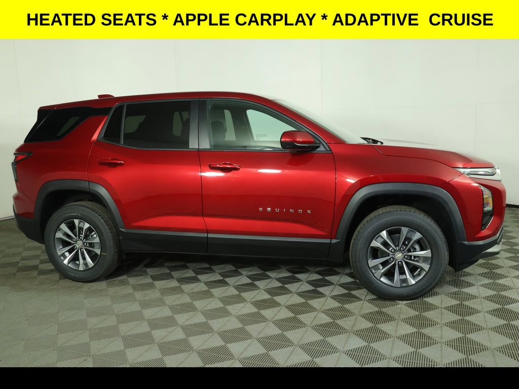 Radiant Red 2026 Chevrolet Equinox LT FWD CVT 1.5L DOHC ** Adaptive Cruise Control, ** Apple CarPlay/Android Auto, ** Alloy Wheels / Premium Wheels, ** Automatic Emergency Braking, ** Backup Camera, ** Blind Spot Monitor, ** Cross Traffic Alert, ** Cruise Control, ** Heated Seats, ** Heated Steering Wheel, ** Keyless Entry, ** Keyless Start, ** Lane Departure Warning, ** Navigation System, ** Premium Sound System / Premium Audio, ** Rear Cross Traffic Alert, ** Remote Start, ** Satellite Radio, ** Stability Control, ** Steering Wheel Controls, ** USB Port, ** WiFi Hotspot, 4-Wheel Disc Brakes, 6 Speakers, ABS brakes, Air Conditioning, AM/FM radio: SiriusXM, Auto High-beam Headlights, Brake assist, Cloth Seat Trim, Compass, Delay-off headlights, Driver vanity mirror, Dual front impact airbags, Dual front side impact airbags, Electronic Stability Control, Emergency communication system: OnStar and Chevrolet connected services capable, Four wheel independent suspension, Front Bucket Seats, Front Center Armrest, Front reading lights, Fully automatic headlights, Heated door mirrors, Heated Driver and Front Passenger Seats, Heated front seats, Heated steering wheel, Illuminated entry, Low tire pressure warning, Navigation System, Occupant sensing airbag, Outside temperature display, Overhead console, Panic alarm, Passenger vanity mirror, Power door mirrors, Power windows, Preferred Equipment Group 1LT, Radio data system, Radio: 11.3 Diagonal Advanced Color LCD Display, Rear reading lights, Rear seat center armrest, Rear window defroster, Rear window wiper, Remote keyless entry, Security system, Speed control, Speed-sensing steering, Split folding rear seat, Steering wheel mounted audio controls, Tachometer, Telescoping steering wheel, Tilt steering wheel, Traction control, Trip computer, Variably intermittent wipers, Wheels: 17 Grazen Metallic Machined-Face Aluminum.
