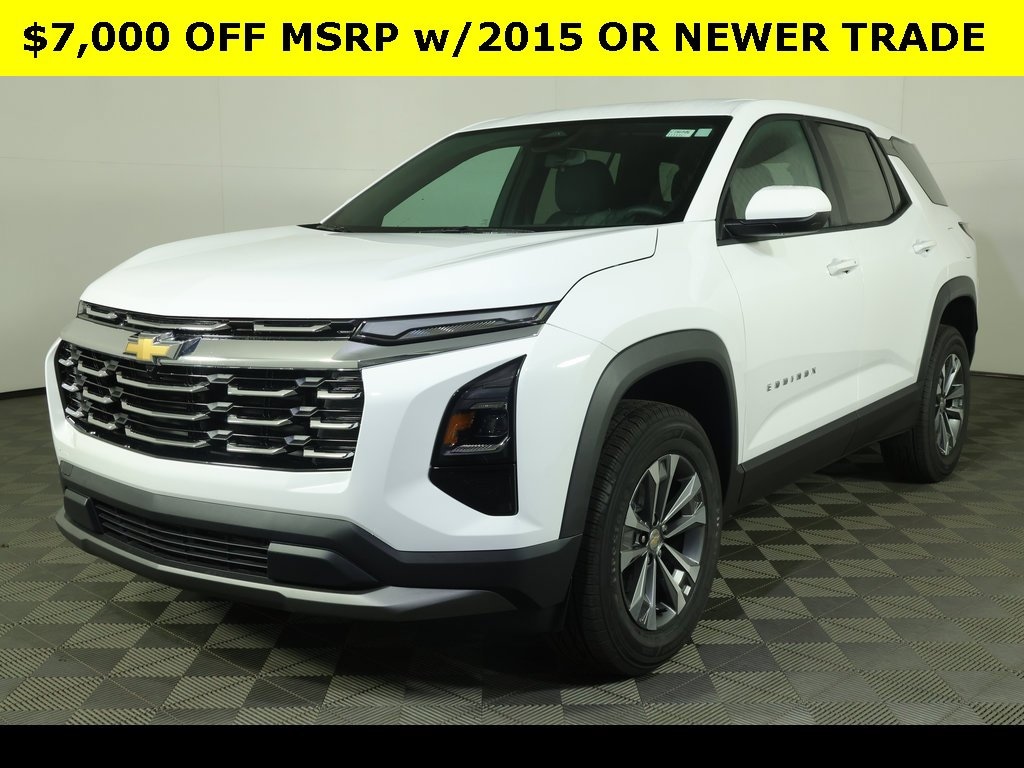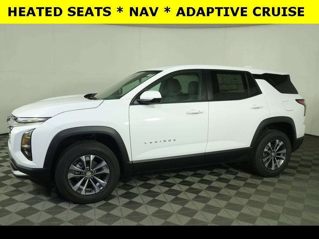 Summit White 2026 Chevrolet Equinox LT FWD CVT 1.5L DOHC ** Adaptive Cruise Control, ** Apple CarPlay/Android Auto, ** Alloy Wheels / Premium Wheels, ** Automatic Emergency Braking, ** Backup Camera, ** Blind Spot Monitor, ** Cross Traffic Alert, ** Cruise Control, ** Heated Seats, ** Heated Steering Wheel, ** Keyless Entry, ** Keyless Start, ** Lane Departure Warning, ** Navigation System, ** Premium Sound System / Premium Audio, ** Rear Cross Traffic Alert, ** Remote Start, ** Satellite Radio, ** Stability Control, ** Steering Wheel Controls, ** USB Port, ** WiFi Hotspot, 4-Wheel Disc Brakes, 6 Speakers, ABS brakes, Air Conditioning, All-Weather Floor Liners (LPO), AM/FM radio: SiriusXM, Auto High-beam Headlights, Brake assist, Cloth Seat Trim, Compass, Delay-off headlights, Driver vanity mirror, Dual front impact airbags, Dual front side impact airbags, Electronic Stability Control, Emergency communication system: OnStar and Chevrolet connected services capable, Four wheel independent suspension, Front Bucket Seats, Front Center Armrest, Front reading lights, Fully automatic headlights, Heated door mirrors, Heated Driver & Front Passenger Seats, Heated front seats, Heated steering wheel, Illuminated entry, Low tire pressure warning, Navigation System, Occupant sensing airbag, Outside temperature display, Overhead console, Panic alarm, Passenger vanity mirror, Power door mirrors, Power windows, Preferred Equipment Group 1LT, Radio data system, Radio: 11.3 Diagonal Advanced Color LCD Display, Rear reading lights, Rear seat center armrest, Rear window defroster, Rear window wiper, Remote keyless entry, Second Row All-Weather Mat (LPO), Security system, Speed control, Speed-sensing steering, Split folding rear seat, Steering wheel mounted audio controls, Tachometer, Telescoping steering wheel, Tilt steering wheel, Traction control, Trip computer, Variably intermittent wipers, Wheels: 17 Grazen Metallic Machined-Face Aluminum.