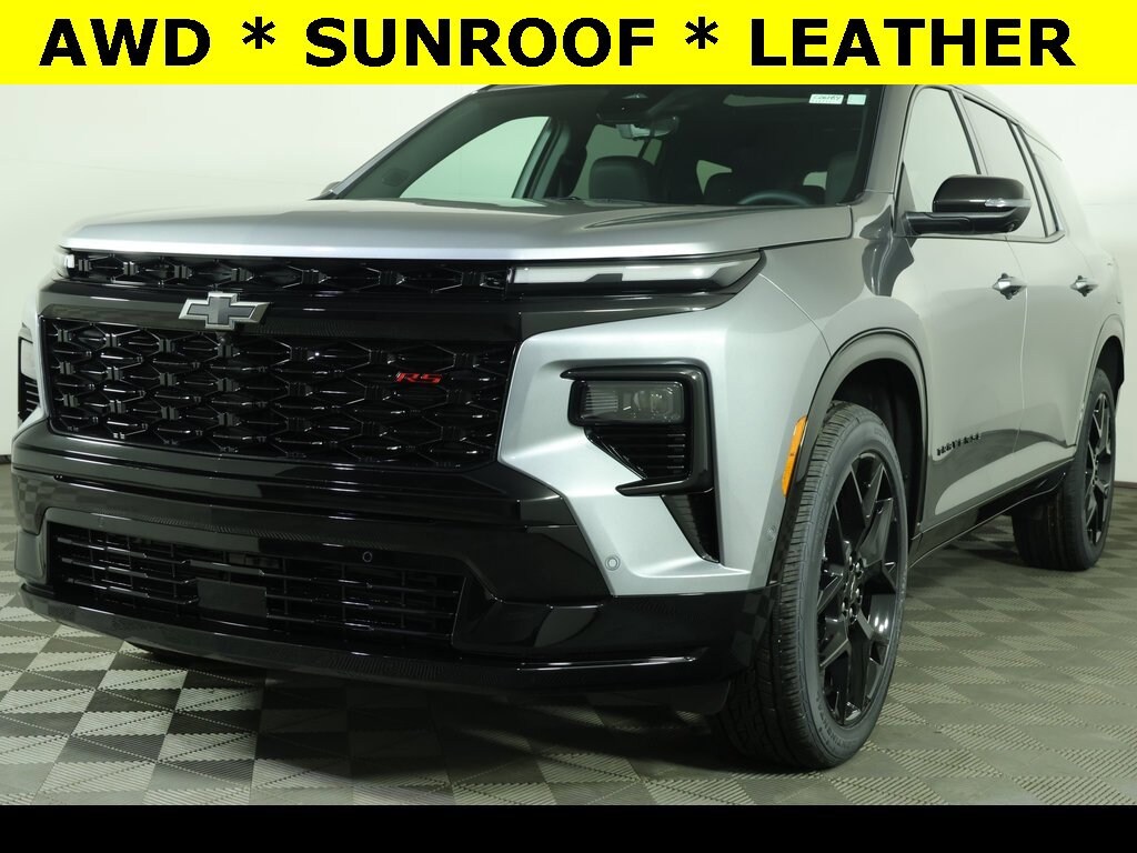 Sterling Gray Metallic 2026 Chevrolet Traverse RS AWD 8-Speed Automatic 2.5L DOHC All Wheel Drive, ** Adaptive Cruise Control, ** Apple CarPlay/Android Auto, ** Alloy Wheels / Premium Wheels, ** Automatic Emergency Braking, ** Backup Camera, ** Blind Spot Monitor, ** Cooled Seats, ** Cross Traffic Alert, ** Cruise Control, ** Heated Seats, ** Heated Steering Wheel, ** Keyless Entry, ** Keyless Start, ** Lane Departure Warning, ** Leather Seats, ** Memory Seat, ** Navigation System, ** Panoramic Roof / Sunroof, ** Premium Sound System / Premium Audio, ** Rear Cross Traffic Alert, ** Remote Start, ** Satellite Radio, ** Stability Control, ** Steering Wheel Controls, ** Sunroof/Moonroof, ** Third Row Seating / 3rd Row Seating, ** USB Port, ** WiFi Hotspot, ** All-Wheel Drive, ** Four-Wheel Drive / 4X4, 1st & 2nd Row All-Weather Floor Liners (LPO), 3rd Row All-Weather Floor Liner (LPO), 3rd row seats: split-bench, 4-Wheel Disc Brakes, 8-Way Power Driver Seat Adjuster, ABS brakes, Air Conditioning, AM/FM radio: SiriusXM with 360L, Apple CarPlay/Android Auto, Auto High-beam Headlights, Auto tilt-away steering wheel, Auto-dimming door mirrors, Automatic temperature control, Bose Premium 12-Speaker Audio System Feature, Brake assist, Child-Seat-Sensing Airbag, Compass, Delay-off headlights, Driver vanity mirror, Dual front impact airbags, Dual front side impact airbags, Electronic Stability Control, Emergency communication system: OnStar, Exterior Parking Camera Rear, Floor Liner Package (LPO), Four wheel independent suspension, Front Bucket Seats, Front dual zone A/C, Front reading lights, Fully automatic headlights, Garage door transmitter, Heated door mirrors, Heated Driver & Front Passenger Seats, Heated front seats, Heated rear seats, Heated steering wheel, Illuminated entry, Integrated Cargo Liner (LPO), Low tire pressure warning, Memory seat, Navigation System, Occupant sensing airbag, Outside temperature display, Overhead console, Panic alarm, Passenger vanity mirror, Perforated Leather-Appointed Seat Trim, Power door mirrors, Power driver seat, Power Liftgate, Power passenger seat, Power windows, Radio data system, Radio: Audio System w/17.7 Diagonal Display, Rain sensing wipers, Rear air conditioning, Rear reading lights, Rear window defroster, Rear window wiper, Remote keyless entry, Security system, Speed control, Speed-sensing steering, Sport steering wheel, Steering wheel memory, Steering wheel mounted audio controls, Tachometer, Telescoping steering wheel, Tilt steering wheel, Traction control, Trip computer, Turn signal indicator mirrors, Variably intermittent wipers, Ventilated Driver & Front Passenger Seats, Ventilated front seats, Voltmeter, Wheels: 22 High Gloss Black Painted Aluminum.