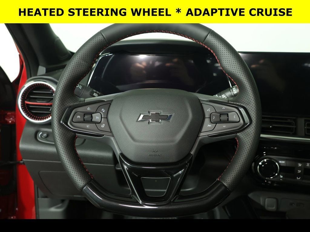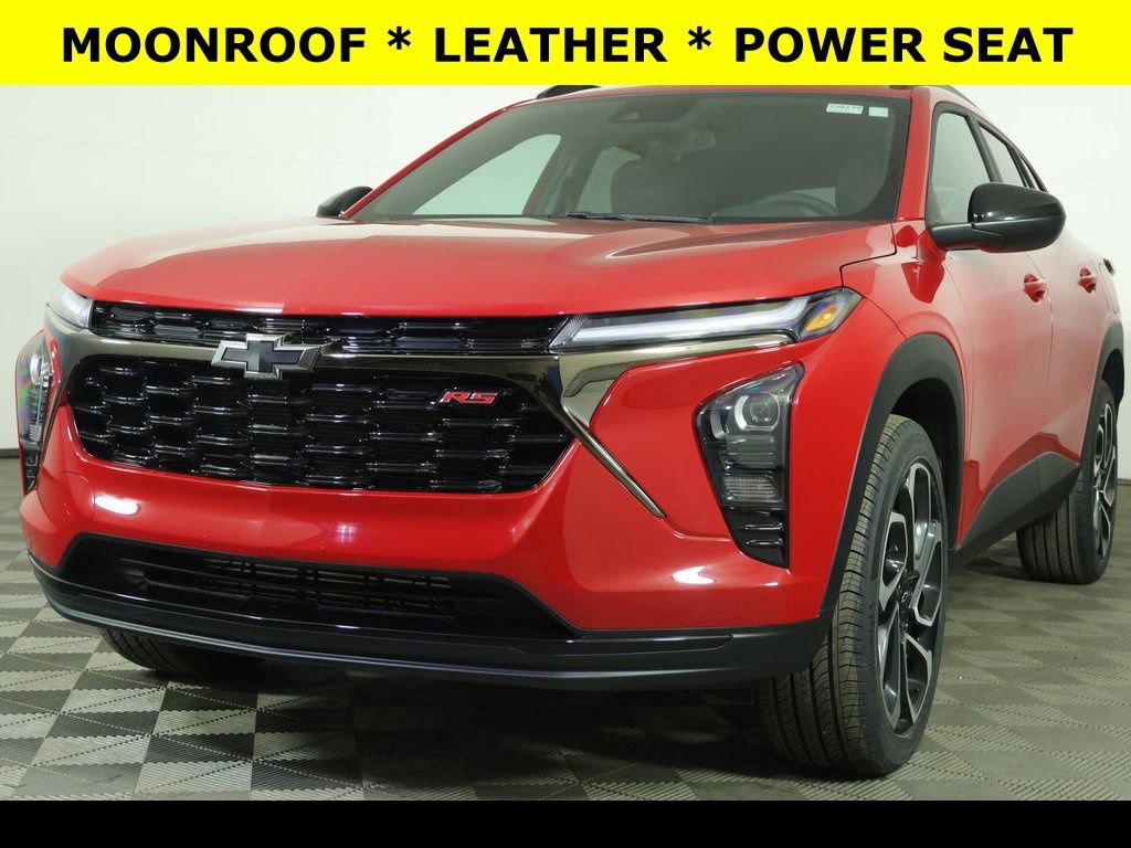 Apex Red 2026 Chevrolet Trax 2RS FWD 6-Speed Automatic ECOTEC 1.2L Turbo ** Adaptive Cruise Control, ** Apple CarPlay/Android Auto, ** Alloy Wheels / Premium Wheels, ** Automatic Emergency Braking, ** Backup Camera, ** Blind Spot Monitor, ** Cross Traffic Alert, ** Cruise Control, ** Heated Seats, ** Heated Steering Wheel, ** Keyless Entry, ** Keyless Start, ** Lane Departure Warning, ** Leather Seats, ** Panoramic Roof / Sunroof, ** Premium Sound System / Premium Audio, ** Rear Cross Traffic Alert, ** Remote Start, ** Satellite Radio, ** Stability Control, ** Steering Wheel Controls, ** Sunroof/Moonroof, ** USB Port, ** WiFi Hotspot, 4-Wheel Disc Brakes, 6-Speaker Audio System Feature, 8-Way Power Driver Seat Adjuster, ABS brakes, Adaptive Cruise Control, Air Conditioning, AM/FM radio: SiriusXM, Auto High-beam Headlights, Automatic temperature control, Brake assist, Compass, Delay-off headlights, Driver Confidence Package, Driver vanity mirror, Dual front impact airbags, Dual front side impact airbags, Electronic Stability Control, Emergency communication system: OnStar One Essentials, Evotex Seat Trim, Exterior Parking Camera Rear, Front Bucket Seats, Front Center Armrest, Front reading lights, Front wheel independent suspension, Fully automatic headlights, Heated door mirrors, Heated Driver and Front Passenger Seats, Heated front seats, Heated steering wheel, Illuminated entry, Lane Change Alert with Side Blind Zone Alert, Leather steering wheel, Low tire pressure warning, Occupant sensing airbag, Outside temperature display, Overhead console, Panic alarm, Passenger vanity mirror, Power door mirrors, Power driver seat, Power Sliding Glass Sunroof with Manual Shade, Power windows, Radio data system, Radio: AM/FM Stereo Audio System, Rear Cross Traffic Alert, Rear Park Assist, Rear window defroster, Rear window wiper, Remote keyless entry, Security system, Speed control, Split folding rear seat, Sport steering wheel, Steering wheel mounted audio controls, Sunroof Package, Tilt steering wheel, Traction control, Trip computer, Variably intermittent wipers, Wheels: 19 Black-Painted Machined Aluminum, Wireless Apple CarPlay/Wireless Android Auto, Wireless Charging.