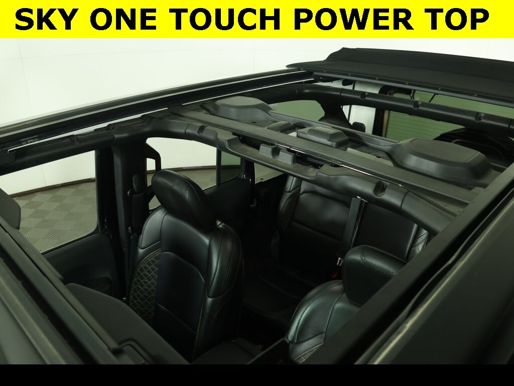 Sky OneTouch PowerTop ** Leather Heated Seats ** Premium Wheels, ** Apple CarPlay/Android Auto, ** Backup Camera, ** Blind Spot Monitor, ** Cross Traffic Alert, ** Cruise Control, ** Four-Wheel Drive / 4X4, ** Heated Seats, ** Heated Steering Wheel, ** Keyless Entry, ** Keyless Start, ** Leather Seats, ** Navigation System, ** Panoramic Roof / Sunroof, ** Premium Sound System / Premium Audio, ** Rear Cross Traffic Alert, ** Remote Start, ** Satellite Radio, ** Stability Control, ** Steering Wheel Controls, ** Sunroof/Moonroof, ** Tow Hitch / Trailer Hitch, ** USB Port, ** WiFi Hotspot, 4-Wheel Disc Brakes, 7 & 4 Pin Wiring Harness, 700 Amp Maintenance Free Battery, 9 Speakers, ABS brakes, Air Conditioning, AM/FM radio, Apple CarPlay/Android Auto, Auto-dimming Rear-View mirror, Automatic temperature control, Auxiliary Switches, Blind Spot & Cross Path Detection, Blue Tow Hooks, Body Color Front Bumper, Brake assist, Class II Receiver Hitch, Cold Weather Group, Compass, Delay-off headlights, Driver vanity mirror, Dual front impact airbags, Dual front side impact airbags, Electronic Stability Control, Emergency communication system: SiriusXM Guardian, Front Bucket Seats, Front Center Armrest w/Storage, Front dual zone A/C, Front fog lights, Front reading lights, Fully automatic headlights, Garage door transmitter, Heated door mirrors, Heated Front Seats, Heated Steering Wheel, High Altitude Package, Illuminated entry, Integrated roll-over protection, Leather steering wheel, Leather Trimmed Bucket Seats, Leather Trimmed Seats w/Sahara Logo, Leather Wrapped Park Brake Handle, Low tire pressure warning, Navigation System, Occupant sensing airbag, Outside temperature display, Panic alarm, ParkSense Rear Park Assist System, ParkView Rear Back-Up Camera, Passenger vanity mirror, Power door mirrors, Power Top Quarter Window Storage Bag, Power windows, Quick Order Package 29N High Altitude, Radio data system, Radio: Uconnect 4C Nav w/8.4" Display, Rear reading lights, Rear seat center armrest, Remote keyless entry, Remote Proximity Keyless Entry, Remote Start, Removable Rear Quarter Windows, Safety Group, Security system, Sky 1-Touch Power Top, Speed control, Split folding rear seat, Sport Suspension, Steering wheel mounted audio controls, Summit Badging, Tachometer, Telescoping steering wheel, Tilt steering wheel, Traction control, Trailer Tow & HD Electrical Group, Trip computer, Variably intermittent wipers, Voltmeter, Wheels: 20" x 8" Fully Painted Aluminum.