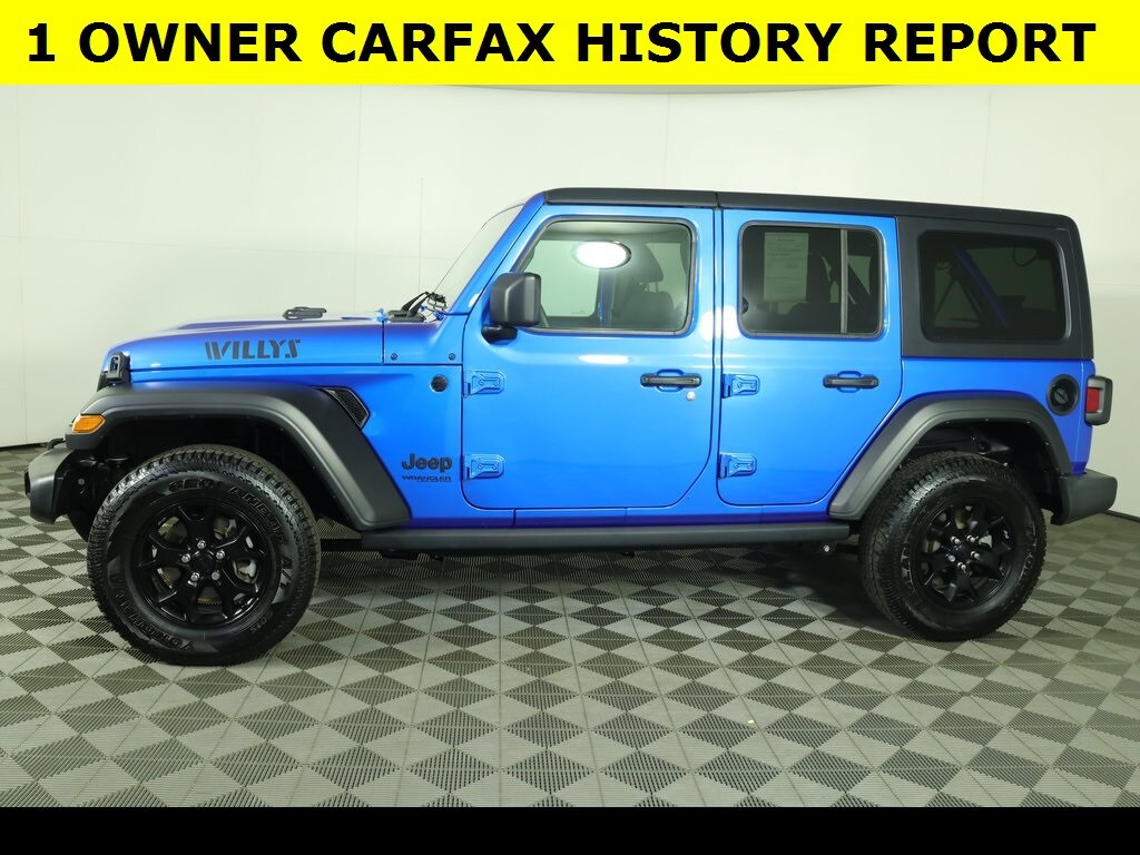 Hydro Blue Pearl Coat 2021 Jeep Wrangler 4D Sport Utility Unlimited Willys 2.0L I4 DOHC 21/24 City/Highway MPG 8-Speed Automatic 4WD