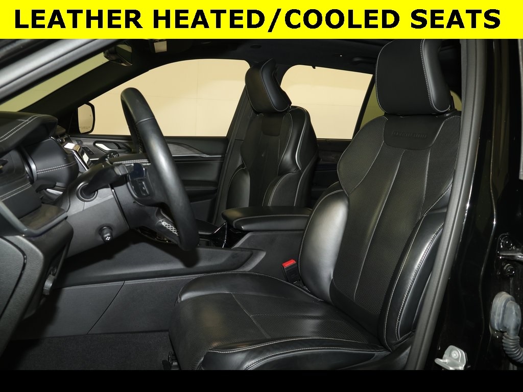 ** Adaptive Cruise Control, ** Alloy Wheels / Premium Wheels, ** Apple CarPlay/Android Auto, ** Automatic Emergency Braking, ** Backup Camera, ** Blind Spot Monitor, ** Cooled Seats, ** Cross Traffic Alert, ** Cruise Control, ** Heated Seats, ** Heated Steering Wheel, ** Keyless Entry, ** Keyless Start, ** Lane Departure Warning, ** Leather Seats, ** Navigation System, ** Panoramic Roof / Sunroof, ** Premium Sound System / Premium Audio, ** Rear Cross Traffic Alert, ** Remote Start, ** Satellite Radio, ** Stability Control, ** Steering Wheel Controls, ** Sunroof/Moonroof, ** USB Port, ** WiFi Hotspot, ** All-Wheel Drive, ** Four-Wheel Drive / 4X4, 10.1" Touchscreen Display, 12-Way Power Adjust Driver Seat, 12-Way Power Adjust Front Passenger Seat, 19 Speakers High Performance Audio, 2nd-Row Manual Window Shades, 4-Wheel Disc Brakes, 4G LTE Wi-Fi Hotspot, 950 Watt Amplifier, ABS brakes, Active Noise Control System, Adaptive suspension, Air Conditioning, All Radio Equipped Vehicles, AM/FM radio: SiriusXM with 360L, Anti-whiplash front head restraints, Apple CarPlay, ATC w/4-Zone Temp Control, Auto High-beam Headlights, Auto-dimming Rear-View mirror, Auto-leveling suspension, Automatic temperature control, Brake assist, Compass, Connected Travel & Traffic Services, Connectivity - US/Canada, Delay-off headlights, Disassociated Touchscreen Display, Driver vanity mirror, Dual front impact airbags, Dual front side impact airbags, Electronic Stability Control, Emergency communication system, Four wheel independent suspension, Front Bucket Seats, Front Center Armrest w/Storage, Front dual zone A/C, Front fog lights, Front reading lights, Fully automatic headlights, Garage door transmitter, Global Telematics Box Module (TBM), GPS Antenna Input, GPS Navigation, HD Radio, Heated door mirrors, Heated front seats, Heated rear seats, Heated steering wheel, Illuminated entry, Integrated Center Stack Radio, Integrated Voice Command w/Bluetooth, Knee airbag, Leather steering wheel, Low tire pressure warning, Luxury Tech Group IV, Memory seat, MOPAR Finishing Package, MOPAR Front Splash Guards, MOPAR Paint Protection Film, MOPAR Rear Splash Guards w/Jeep Logo, Navigation System, Occupant sensing airbag, Outside temperature display, Overhead console, Panic alarm, Passenger Seat Memory, Passenger vanity mirror, Power door mirrors, Power driver seat, Power Driver Seatback Massage, Power Front Passenger Seatback Massage, Power Liftgate, Power moonroof, Power passenger seat, Power windows, Quick Order Package 22N, Radio: Uconnect 5 Nav w/10.1" Display, Rain sensing wipers, Rear reading lights, Rear seat center armrest, Rear window defroster, Rear window wiper, Rearview Autodim Digital Display Mirror, Remote keyless entry, Security system, SiriusXM Radio Service, SiriusXM Satellite Radio, SiriusXM w/360L, Speed control, Speed-Sensitive Wipers, Split folding rear seat, Steering wheel memory, Steering wheel mounted audio controls, Tachometer, Telescoping steering wheel, Tilt steering wheel, Traction control, Trip computer, Turn signal indicator mirrors, USB Host Flip, Variably intermittent wipers, Ventilated front seats, Voltmeter, Wheels: 20" x 8.5" Machined Face Aluminum, Wireless Charging Pad.