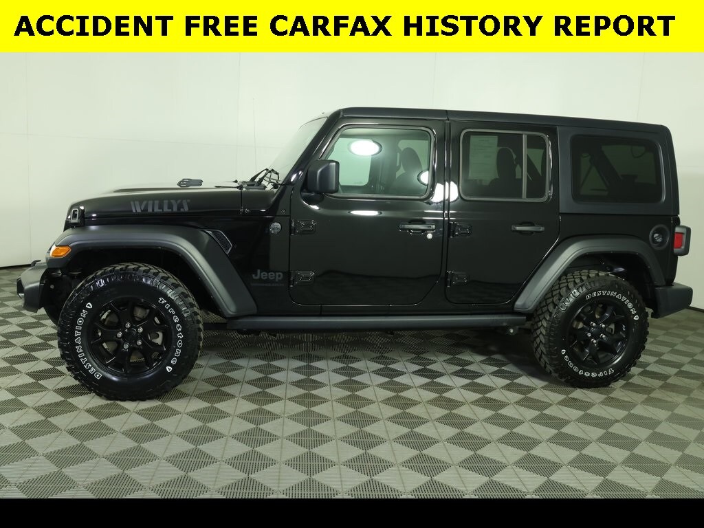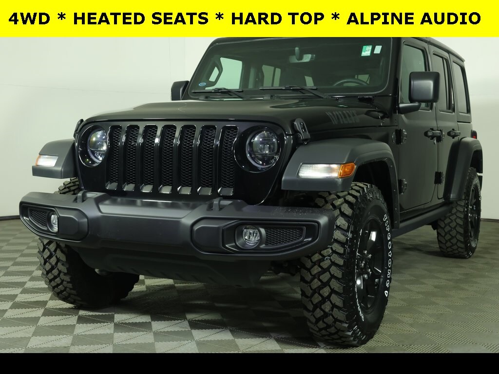 ** All-Wheel Drive, ** Apple CarPlay/Android Auto, ** Backup Camera, ** Cruise Control, ** Four-Wheel Drive / 4X4, ** Heated Seats, ** Heated Steering Wheel, ** Keyless Entry, ** Keyless Start, ** Navigation System, ** Premium Sound System / Premium Audio, ** Remote Start, ** Satellite Radio, ** Stability Control, ** Steering Wheel Controls, ** Tow Hitch / Trailer Hitch, ** USB Port, ** WiFi Hotspot, 2-Door Passive Entry, Front Door Locks, 220 Amp Alternator, 240 Amp Alternator, 4-Wheel Disc Brakes, 4-Wheel Drive Swing Gate Decal, 4G LTE Wi-Fi Hot Spot, 7 & 4 Pin Wiring Harness, 700 Amp Maintenance Free Battery, 8.4" Radio & Premium Audio Group, 8.4" Touchscreen Display, ABS brakes, Air Conditioning, Air Conditioning w/Auto Temperature Control, Air Filtering, Alpine Premium Audio System, AM/FM radio, Anti-Spin Differential Rear Axle, Apple CarPlay, Apple CarPlay/Android Auto, Auto-Dimming Rear-View Mirror, Automatic Headlamps, Aux Battery, Auxiliary Switches, Black 3-Piece Hard Top, Black 3-Piece Hard Top, Brake assist, Class II Receiver Hitch, Cloth Low-Back Bucket Seats, Cold Weather Group, Compass, Convenience Group, Deep Tint Sunscreen Windows, Delay-off headlights, Driver vanity mirror, Dual front impact airbags, Dual front side impact airbags, Electronic Stability Control, Emergency communication system: SiriusXM Guardian, Emergency/Assistance Call, Engine Oil Cooler, Freedom Panel Storage Bag, Front 1-Touch Down Power Windows, Front Bucket Seats, Front fog lights, Front LED Fog Lamps, Front reading lights, Google Android Auto, GPS Antenna Input, GPS Navigation, Heated Front Seats, Heated Steering Wheel, Integrated Center Stack Radio, Integrated roll-over protection, Integrated Voice Command w/Bluetooth, LED Headlamp & Fog Lamp Group, LED Premium Reflector Headlamps, Low tire pressure warning, Non-Lock Fuel Cap w/o Discriminator, Occupant sensing airbag, Off-Road Info Pages, Outside temperature display, ParkView Rear Back-Up Camera, Passenger vanity mirror, Power Heated Mirrors, Quick Order Package 22W Willys, Radio: Uconnect 4C Nav w/8.4" Display, Rear reading lights, Rear Window Defroster, Rear Window Wiper/Washer, Remote Keyless Entry, Security Alarm, SiriusXM Satellite Radio, SiriusXM Traffic Plus, SiriusXM Travel Link, Speed control, Speed Sensitive Power Locks, Split folding rear seat, Steering wheel mounted audio controls, Sun Visors w/Illuminated Vanity Mirrors, Tachometer, Technology Group, Telescoping steering wheel, Tilt steering wheel, Traction control, Trailer Tow & Aux Switch Group, Trip computer, Universal Garage Door Opener, USB Host Flip, Variably intermittent wipers, Wheels: 17" x 7.5" Black Aluminum, Willys, Willys Hood Decal.
