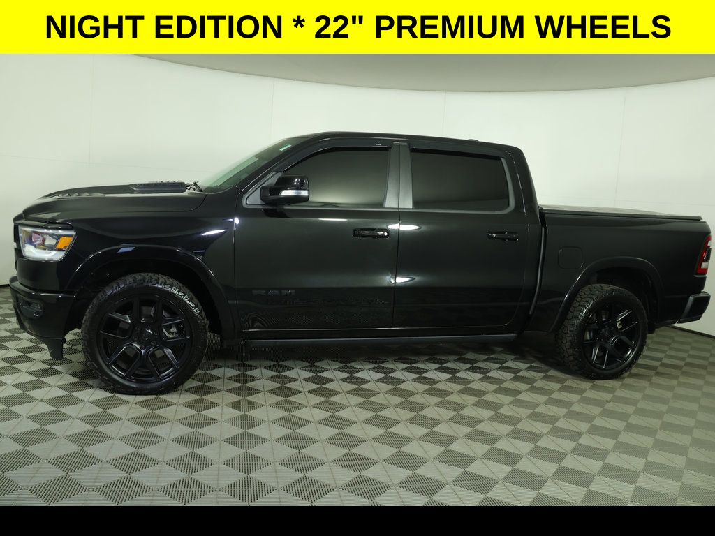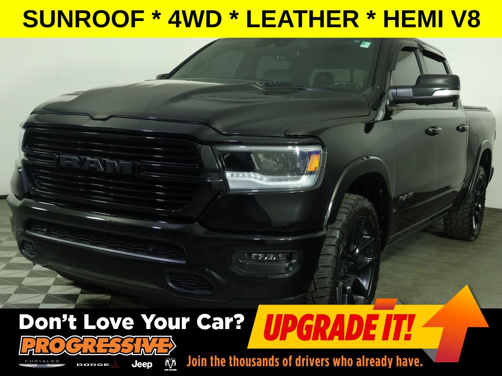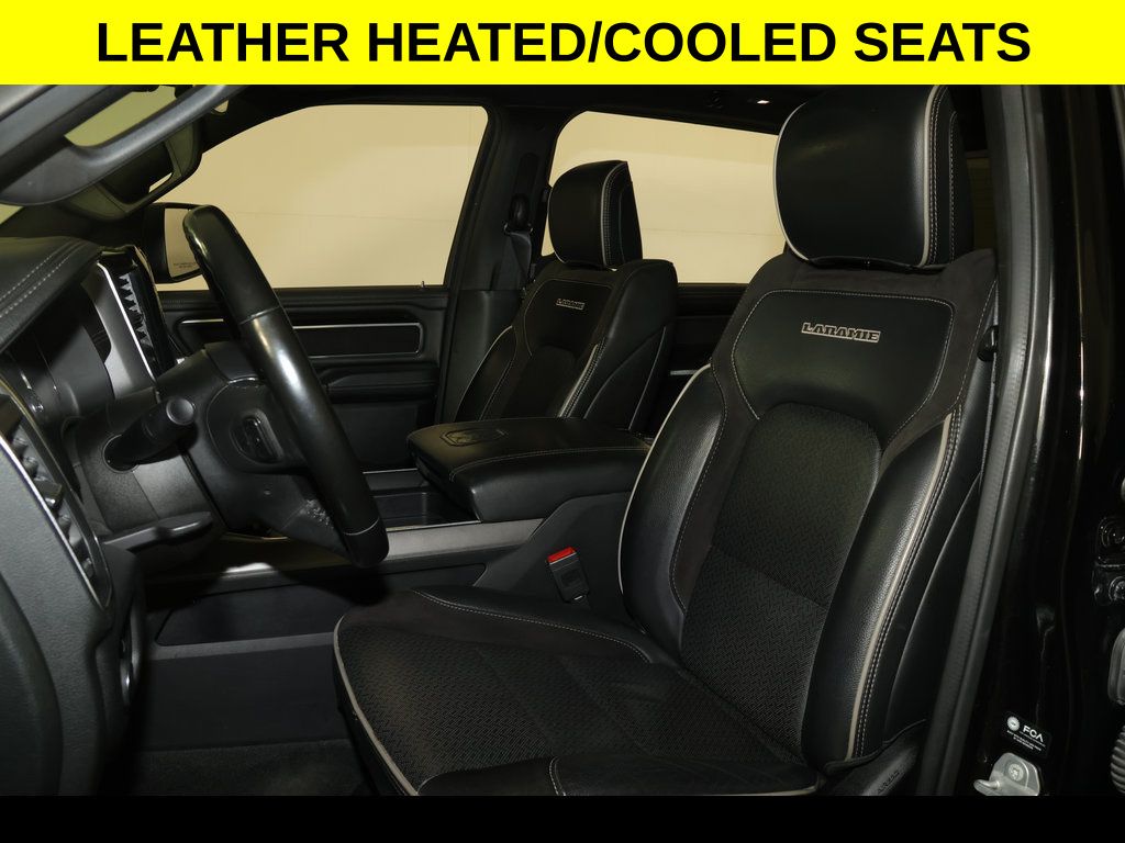 DON'T LOVE YOUR CAR? UPGRADE IT ... With a HUGE Sunroof ** Leather Heated & Ventilated Seats ** Night Edition ** HEMI 5.7L V8 * 22" Premium Black Wheels ** Uconnect Nav with 12.0" Touch Screen Display ** Front & Rear Park Assist ** Multi-Fuction Tailgate ** Apple CarPlay/Android Auto, ** Backup Camera, ** Four-Wheel Drive / 4X4, ** Heated Seats, ** Heated Steering Wheel, ** Keyless Entry, ** Keyless Start, ** Leather Seats, ** Navigation System, ** Panoramic Roof / Sunroof, ** Premium Sound System / Premium Audio, ** Rear Cross Traffic Alert, ** Remote Start, ** Stability Control, ** Steering Wheel Controls, ** Sunroof/Moonroof, ** Tow Hitch / Trailer Hitch, ** USB Port, ** WiFi Hotspot, 4-Wheel Disc Brakes, ABS brakes, Adjustable pedals, Air Conditioning, AM/FM radio: SiriusXM, Anti-Spin Differential Rear Axle, Apple CarPlay/Android Auto, Audio memory, Auto High Beam Headlamp Control, Auto-Dimming Exterior Driver Mirror, Auto-dimming Rear-View mirror, Automatic temperature control, Black Headlamp Bezels, Black Interior Accents, Body Color Rear Bumper w/Step Pads, Brake assist, Bucket Seats, Compass, Convex Wide-Angle Mirror Insert, Delay-off headlights, Dome Dual LED Reading Lamp, Driver Seat Memory, Driver vanity mirror, Dual Exhaust w/Black Tips, Dual front impact airbags, Dual front side impact airbags, Dual-Pane Panoramic Sunroof, Electronic Stability Control, Exterior Mirrors Courtesy Lamps, Exterior Mirrors w/Heating Element, Exterior Mirrors w/Memory, Exterior Mirrors w/Supplemental Signals, Front dual zone A/C, Front fog lights, Front reading lights, Front Seat Back Map Pockets, Front wheel independent suspension, Full Length Upgraded Floor Console, Fully automatic headlights, Garage door transmitter, harman/kardon 19 Speaker Premium Sound, Heated door mirrors, Heated Front Seats, Heated Second Row Seats, Heated Steering Wheel, Illuminated entry, Laramie Level B Equipment Group (DISC), Leather steering wheel, Leather Trimmed Bucket Seats, LED Dome/Reading Lamp, Low tire pressure warning, Memory seat, Mopar Black Tubular Side Steps, Multi-Function Tailgate, Night Edition, Occupant sensing airbag, Outside temperature display, Overhead console, Panic alarm, ParkSense Front/Rear Park Assist w/Stop, ParkView Rear Back-Up Camera, Passenger vanity mirror, Pedal memory, Power 8-Way Driver & Passenger Seats, Power door mirrors, Power driver seat, Power passenger seat, Power Running Boards, Power windows, Power-Folding Mirrors, Quick Order Package 27H Laramie, Radio: Uconnect 5 Nav w/12.0" Display, Rain Sensitive Windshield Wipers, Rear 60/40 Folding Seat, Rear 60/40 Folding Split Recline Seat, Rear step bumper, Rear Underseat Compartment Storage, Rear Wheelhouse Liners, Rear window defroster, Remote keyless entry, Remote Tailgate Release, Security system, SiriusXM Radio Service, Speed control, Split folding rear seat, Sport Performance Hood, Steering wheel mounted audio controls, Tachometer, Telescoping steering wheel, Tilt steering wheel, Traction control, Tri-Fold Tonneau Cover, Trip computer, Turn signal indicator mirrors, Twill Film Appliques, Variably intermittent wipers, Ventilated Front Seats, Voltmeter, Wheels: 22" x 9" Forged Aluminum.