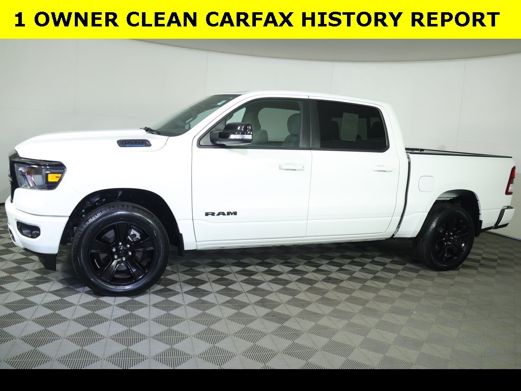 Odometer is 2460 miles below market average! Bright White Clearcoat 2022 Ram 1500 4D Crew Cab Big Horn/Lone Star -Night Edition 3.6L V6 24V VVT 19/24 City/Highway MPG 8-Speed Automatic 4WD